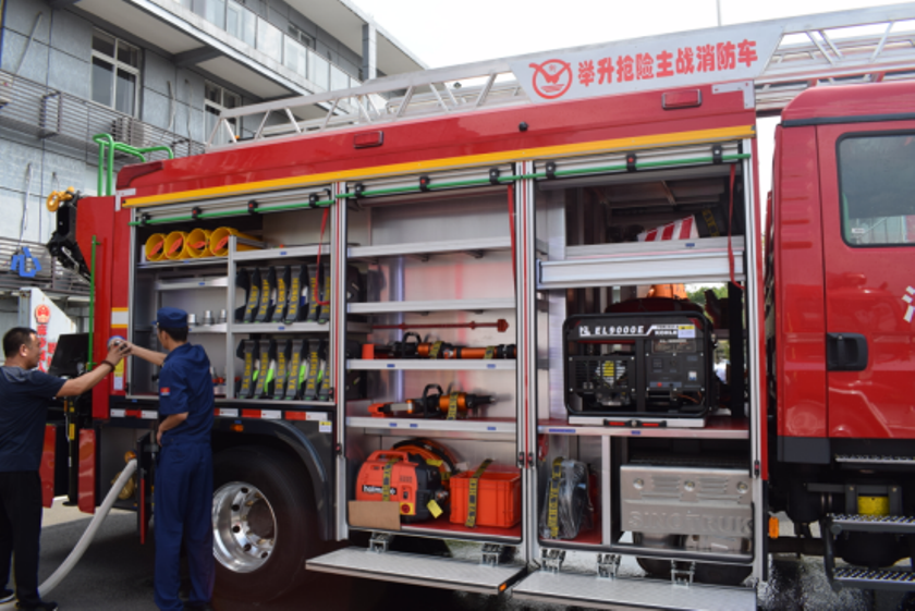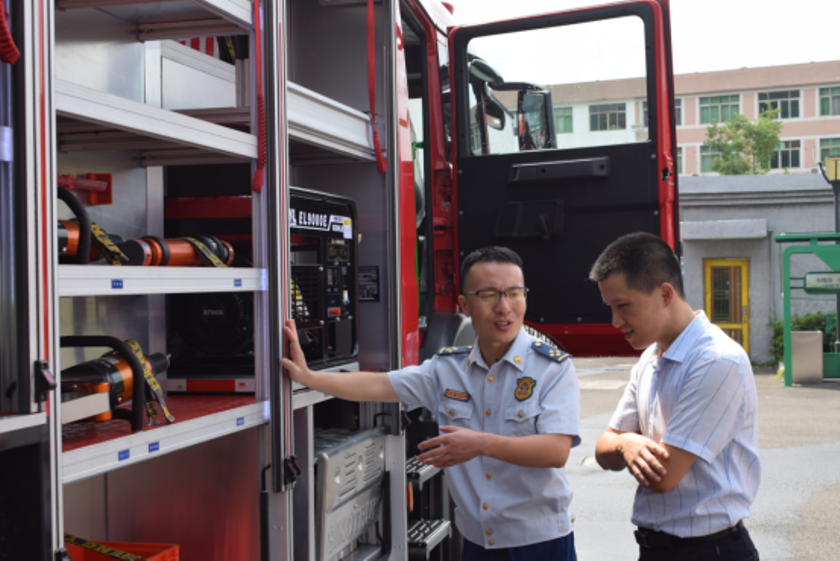 演示結(jié)束后,鎮(zhèn)政府各級領(lǐng)導(dǎo)及平陽縣大隊(duì)領(lǐng)導(dǎo)來到新購的舉升搶險主戰(zhàn)消防車前,詳 細(xì)參觀、了解消防車輛技術(shù)性能,觀摩了新型消防車輛器材的展示和車輛各種功能操作 演示,并對我公司研制的新產(chǎn)品進(jìn)行了點(diǎn)評,給予了高度的贊許,稱此款車型最大化的 滿足了老舊小區(qū)、狹窄街道、城鄉(xiāng)低建筑物等滅火救援工作的需要。