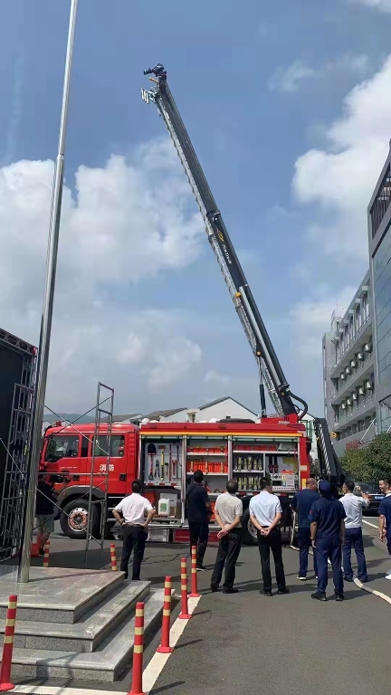 我公司王經(jīng)理介紹主戰(zhàn)車功能和技術(shù)參數(shù),現(xiàn)場演示了云梯、高噴及牽引系統(tǒng)的操作, 并對消防車的性能做了測試,完全滿足消防隊(duì)提出的性能技術(shù)指標(biāo),充分展示了我們公 司特色產(chǎn)品的技術(shù)領(lǐng)先。