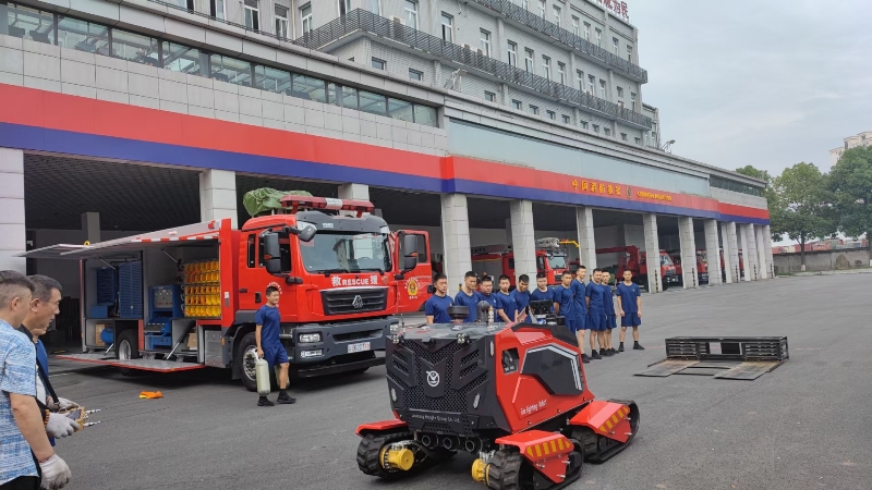 2022年6月末公司領(lǐng)導及銷售經(jīng)理帶著公司兩款主打產(chǎn)品——舉升搶險主戰(zhàn)消防車和全地形消防滅火機器人在重慶總隊、貴陽總隊及各支隊進行巡展演示。