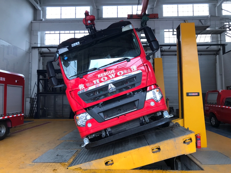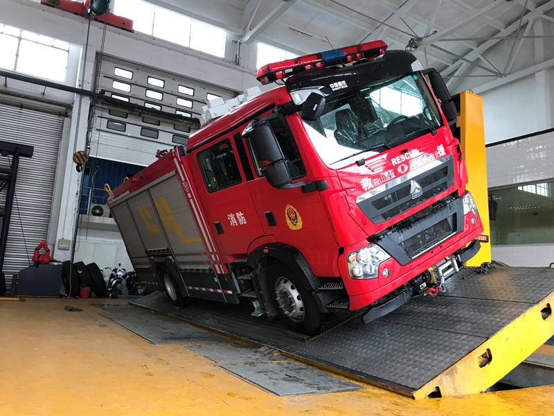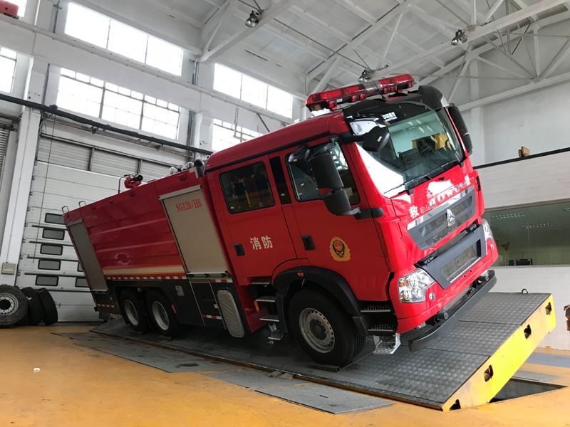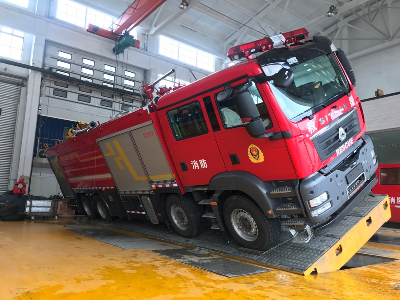 車輛底盤為ZZ5207TXFV471GF5底盤,發(fā)動機型號MC07H.35-60,功率為257kw,國六排放標準,軸距4500mm,罐體材質采用采用優(yōu)質304不銹鋼板,容罐容量:水3600kg+B類泡沫900kg+A類泡沫200kg;消防泵為KSP1000(美國大力);壓縮空氣泡沫系統:品牌:美國大力,型號:KSPBC1000/220型,型式:全自動集成式壓縮空氣A類泡沫系統,消防炮為PLKD48手動及電控,升降照明系統YZH6-4.83CFA,牽引絞盤系統為杭州天銘FHW16500 整車器材箱卷簾門防水槽采用專用鋁合金開模型材,型材上加裝LED照明燈帶,使整車形成環(huán)繞式照明,既美觀且照明效果又好。器材箱卷簾門下部翻轉踏板,采用一體式鋁合金擠壓型材,模塊化組裝,增加了整車的品質。箱體內部器材框架采取了專用的的擋板型材,有效的保證了內部器材固定的穩(wěn)定性,同時使器材標牌整齊化一,清晰明了。壓縮空氣系統采用美國大力集成式系統,結構緊湊、性能優(yōu)良、操作簡便統一空間利用率高??諌簷C流量為國內目前CAFS系統中最大流量,可達105L/S,更好地滿足于壓縮空氣泡沫系統性能需求。