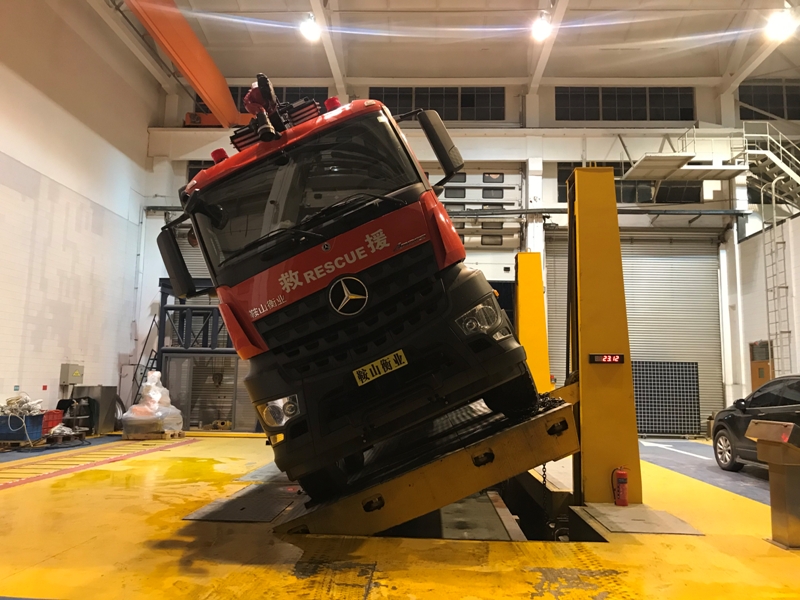 車輛底盤為德國奔馳Arocs4158底盤,發(fā)動機型號OM473LA,功率:425kw,國六排放標準,軸距:1750mm+4600mm+1350mm,罐體材質:采有優(yōu)質不銹鋼板304;容罐容量:水15000kg,泡沫3000kg;消防泵為美國大力,型號為ZSP2650;流量:10000L/min;負壓式泡沫比例混合器,型號為英國FSA;舉升臂頂端消防炮Ⅰ,型號:3482+5177美國阿密隆,流量80L/S,射程:水≥80m,泡沫≥70m;車體尾部消防炮Ⅱ,型號:DICODOPLUS 150法國博克,流量:10000L/M,射程:水≥110 m,泡沫≥100m,大流量消防槍,車頂前部設有舉升高度為12米的臂架。 整車器材箱卷簾門防水槽采用專用鋁合金開模型材,型材上加裝LED照明燈帶,使整車形成環(huán)繞式照明,既美觀且照明效果又好。車頂前部設有舉升高度為12米的臂架,頂端加裝有進口電控消防炮。車頂后部設有進口電控大流量消防炮。箱體內部器材框架采取了專用的的擋板型材,有效的保證了內部器材固定的穩(wěn)定性,同時使器材標牌整齊化一,清晰明了。車頂兩側女兒墻內部加裝有LED照明燈帶,可滿足夜間工作人員在車頂操作時對照明需求。配備大流量消防槍,可噴射水、泡沫、等滅火介質,滅火效率極高。